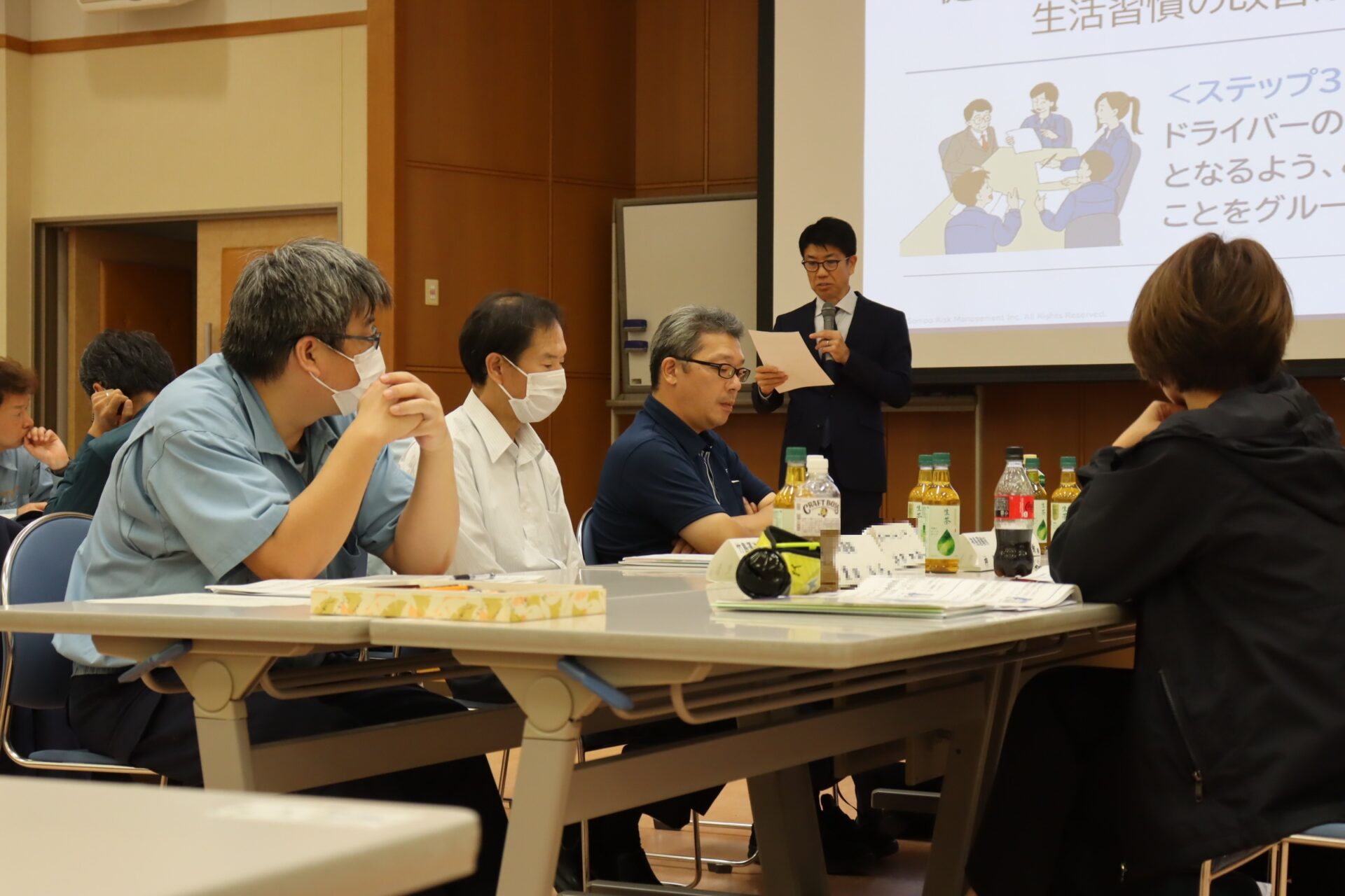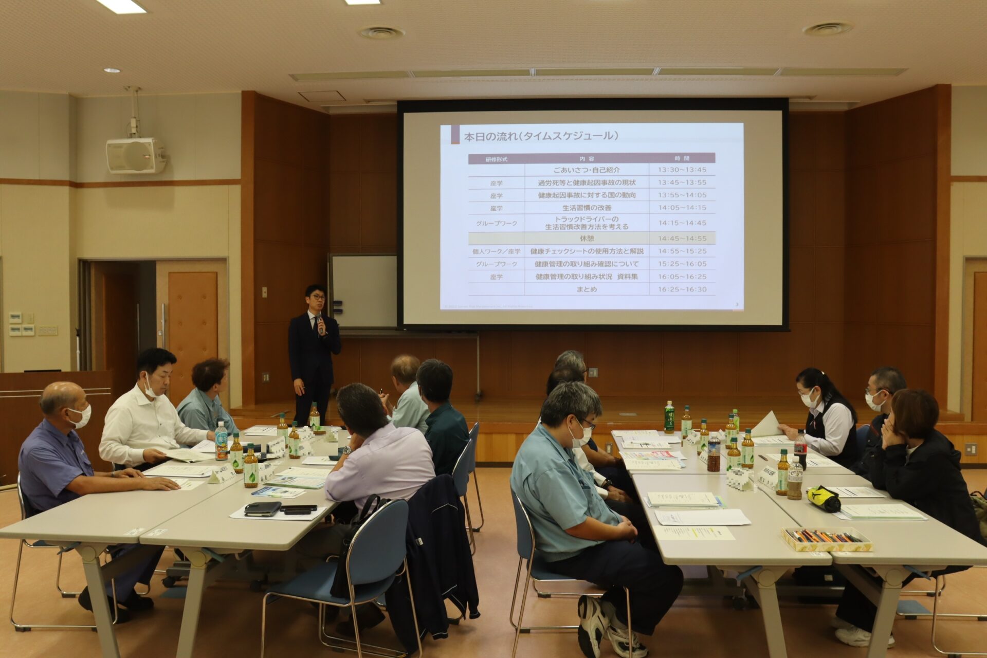 その後、「トラックドライバーの生活習慣改善方法を考える」や「健康管理の取り組み確認について」のグループワークが行われました。当セミナーを通じて、業務に活かせる貴重な発見があり、参加者同士で活発な議論が交わされました。